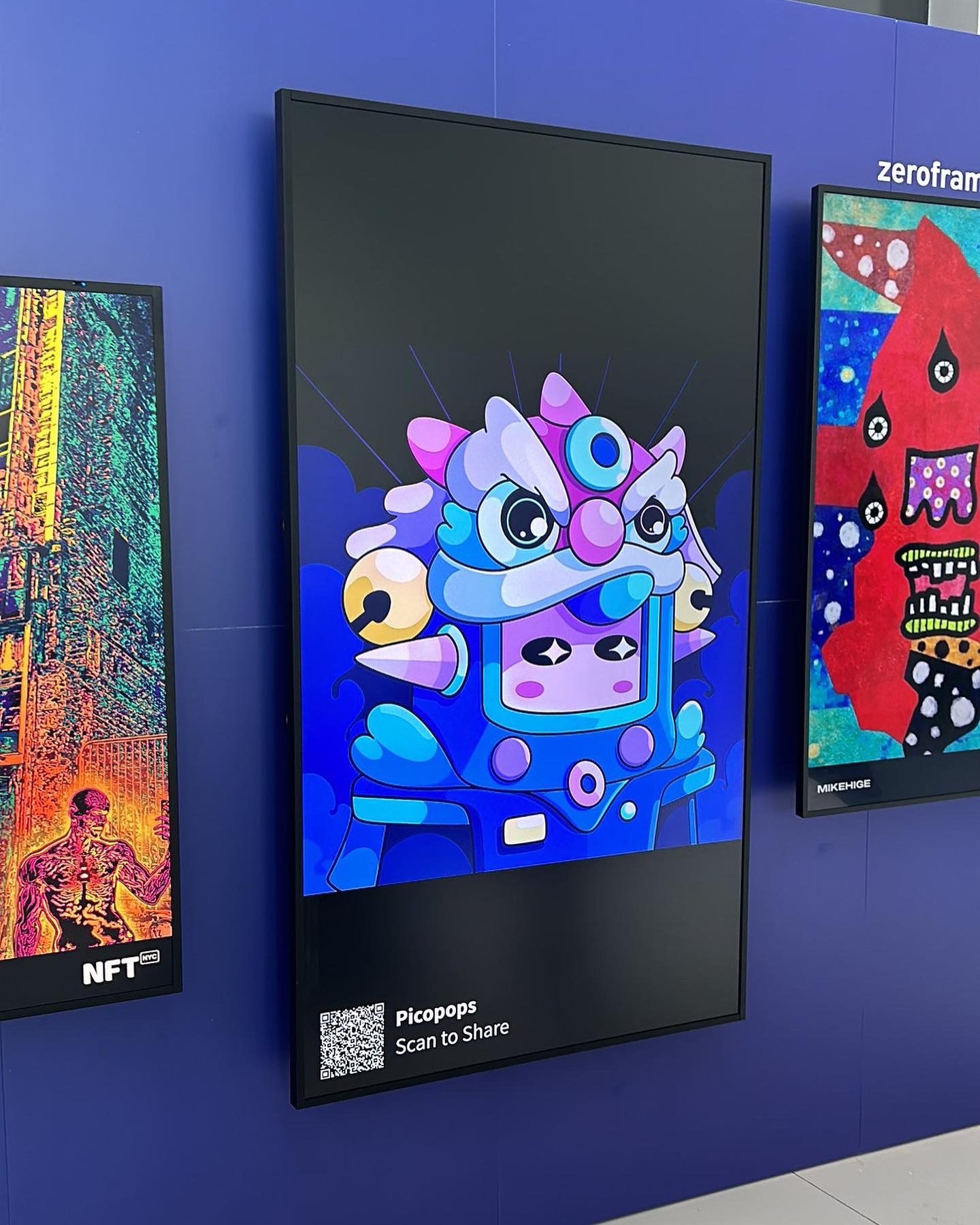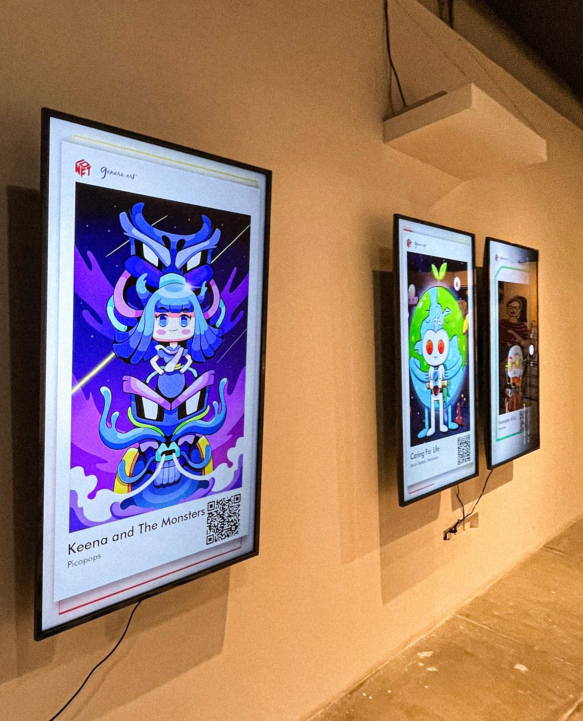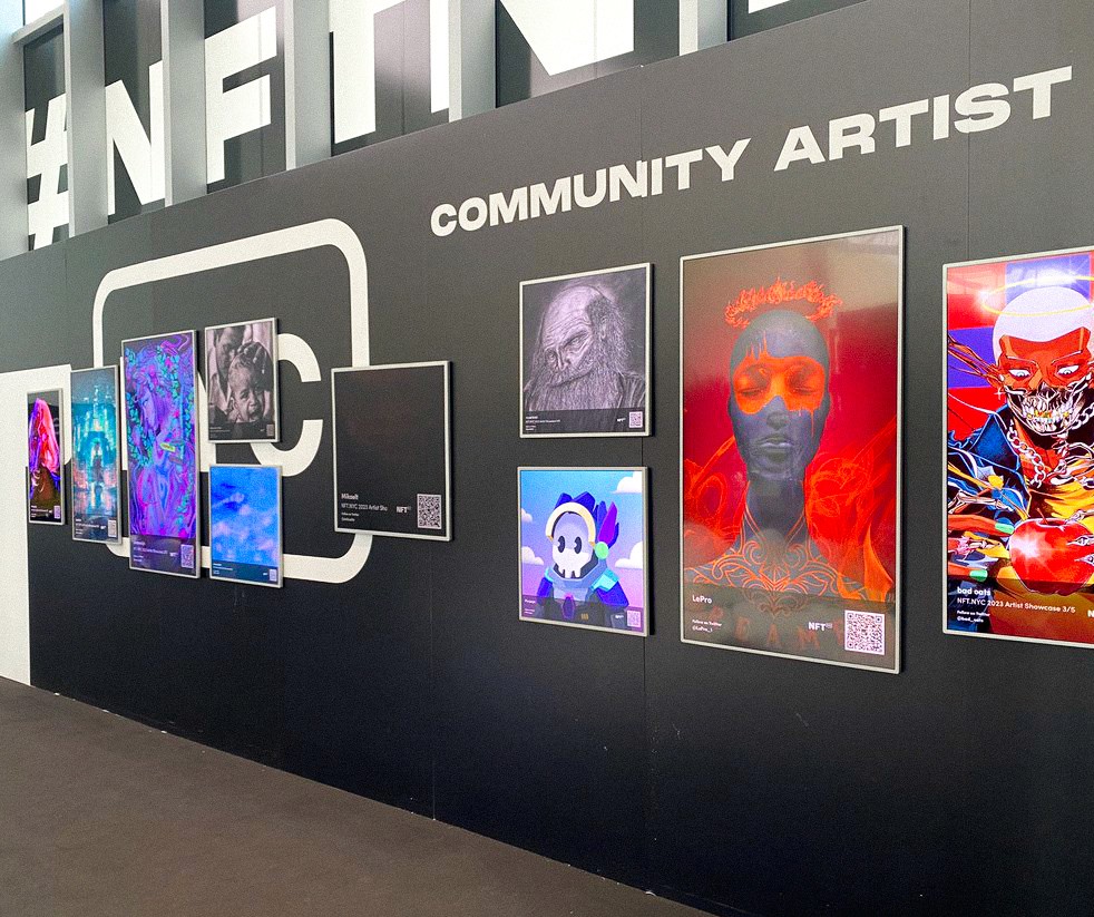 Features a selection of artworks chosen for public display across various exhibitions and events. Many of these pieces have been featured in Web3 gatherings such as NFT.NYC 2023, as well as displayed on digital billboards and exhibition screens. This section highlights works that were selected for presentation in larger visual spaces, representing how the artworks extend beyond digital platforms into real-world and event-based environments.